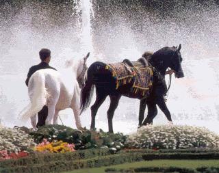 ARABISCHER ADEL IN KÖNIGLICHEN GÄRTEN Asil World-Cup 2000 von Doris Melzer 150 Asil-Araberpferde, darunter der traumhaft schöne Rapphengst Simeon Sadik im Besitz von Rolling-Stones-Drummer Charlie Watts (58). Es war wie ein Märchen aus Tausendundeiner Nacht. In den wunderschönen Barockgärten von Hannover Herrenhausen trafen sich die edelsten Pferde der Welt: die Asil-Araber. Unter der Schirmherrschaft von H. H. Sheikh Zayed bin Sultan Al Nahyan, dem Präsidenten der Vereinigten Arabischen Emirate, veranstaltete der Asil Club e. V. (Hildesheim) ein fulminates Fest rund ums arabische Pferd. |